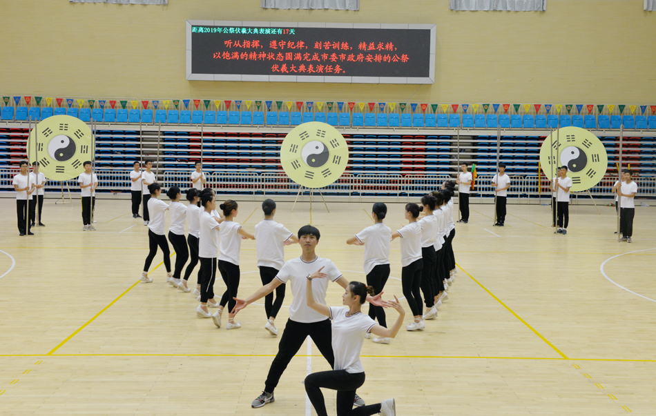 王军对乐舞告祭的排练工作给予充分肯定,向我校对公祭伏羲大典活动的支持和帮助表示感谢,向参加乐舞表演的师生表示亲切慰问。他指出,今年是公祭伏羲大典30周年,乐舞告祭作为公祭大典的一项重要仪程,对于烘托现场气氛,营造大典庄严、肃穆的氛围具有十分重要的作用。他希望参加表演的同学们怀着对人文始祖伏羲的敬仰尊崇之情,刻苦训练、追求卓越,以扎实的基本功,娴熟的动作,流畅的节奏,认真做好排练工作,圆满完成公祭伏羲大典的表演任务,为学校争光添彩。