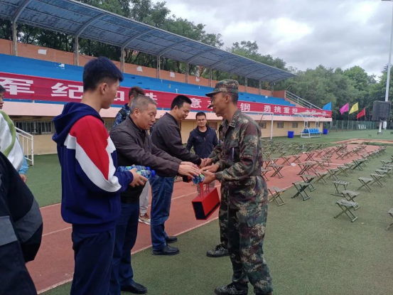 学院领导向军训新生和军训教官发放脉动、火腿肠等物资,为新生带来了节日的亲切问候与祝福。
