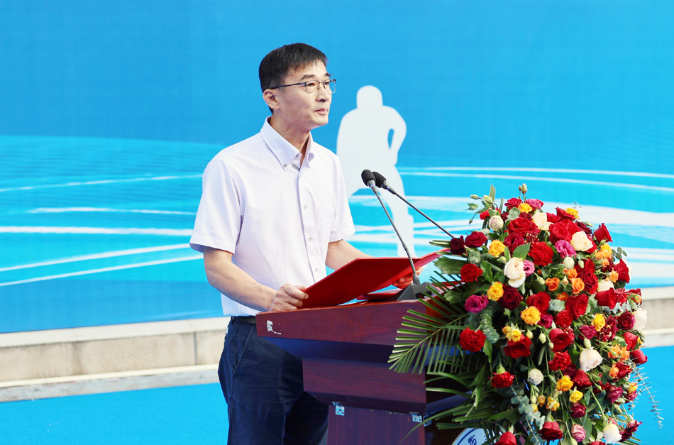 王向晨宣布第十届中国大学生曲棍球锦标赛开幕。