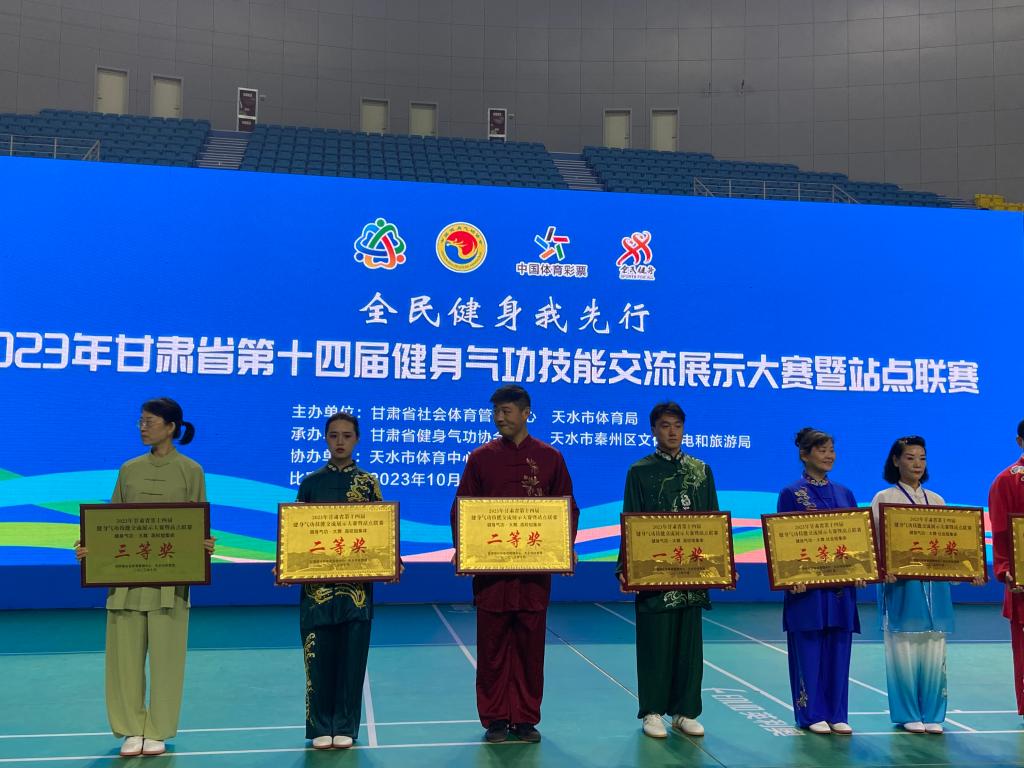 近日,由甘肃省社会体育管理中心和天水市体育局联合主办的甘肃省第十四届健身气功技能交流展示大赛暨站点联赛在天水市体育中心体育馆举行。我校选派学生参加了八段锦、大舞、导引养生功十二法集体赛以及八段锦、导引养生功十二法个人赛。