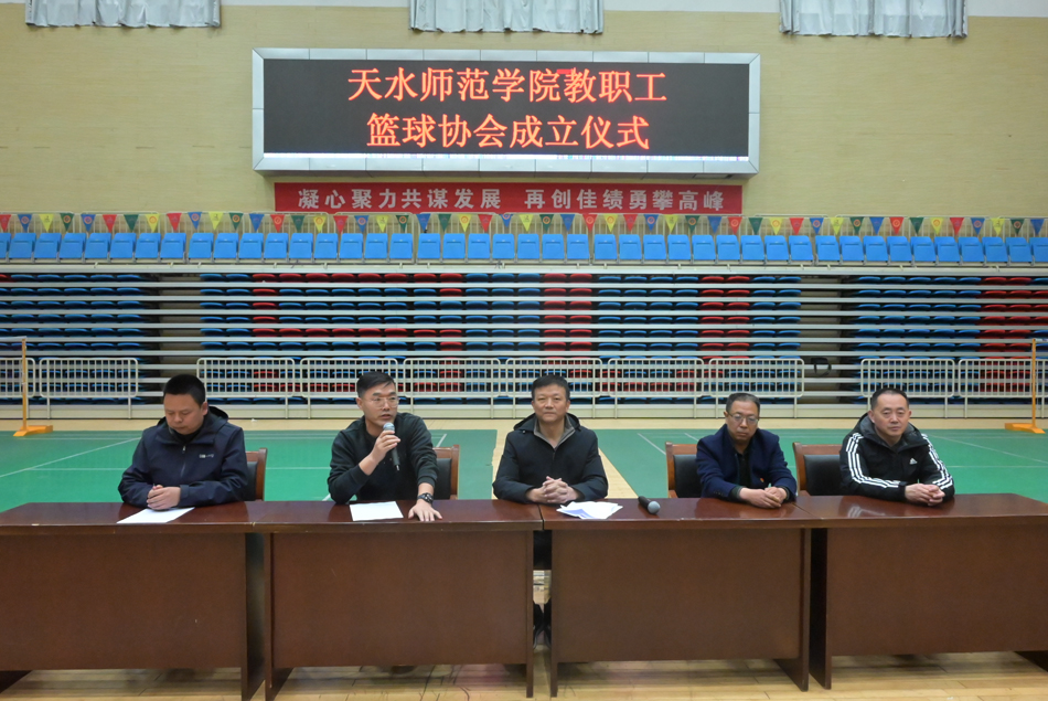 张登红表示,长期以来,校党委高度重视教职工的身心健康,认为健康的体魄是努力工作、幸福生活的基础。教职工篮球协会的成立,是我校落实全民健身国家战略、推动校园文化建设的重要举措,有利于激发更多教职工参与体育锻炼的激情与热情,让热爱篮球的教职工在这个平台上找到释放压力、享受运动乐趣的空间,促伴随着庄严的国歌声,教职工篮球协会成立仪式正式拉开帷幕。按照议程,校党委书记刘振奎当选名誉主席,张登红当选主席。校工会主席令贇宣布天水师范学院教职工篮球协会正式成立。进相互交流、切磋技艺、增进友谊,共同享受篮球带来的快乐与激情,增强广大教职工凝聚力,推动我校体育文化事业繁荣发展。