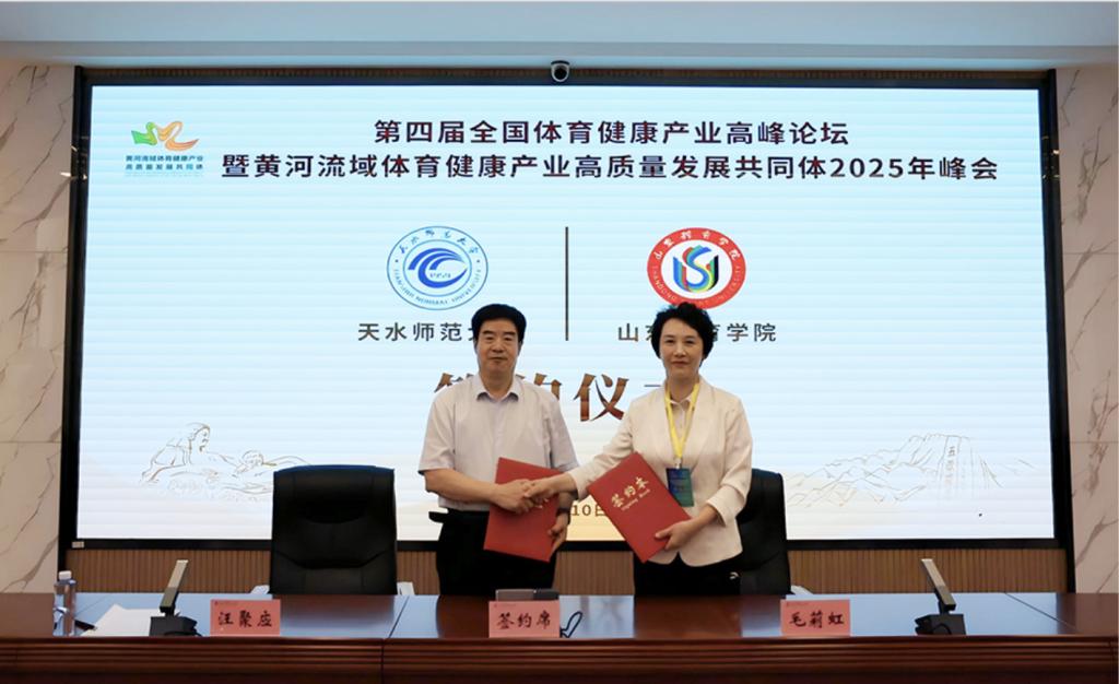 论坛期间,山东体育学院与天水师范大学签署战略合作协议,这是山东体育学院首次与西部高校开展深度合作,标志着黄河流域体育健康产业协同发展迈出了重要一步。双方将在学科建设、人才培养、科研创新等领域展开合作,共同为黄河流域高质量发展提供体育教育支撑。