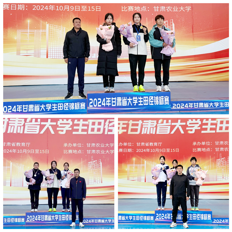 10月11日上午,由甘肃省教育厅主办的2024年甘肃省大学生田径锦标赛在甘肃农业大学开幕。我校有15名运动健儿参加比赛,经过5天激烈的角逐,最终斩获10金、6银、3铜,斩获2个第四名、1个第五名和1个第八名的骄人成绩,刷新了我校参赛以来的最好成绩。王麒麟、王建刚、赵瑞星三位教练员获得“优秀教练员”荣誉称号,天水师范学院荣获“体育道德风尚奖”,实现了精神文明和比赛成绩的双丰收为我校赢得了良好声誉,同时也是给学校65周年华诞的最好献礼。