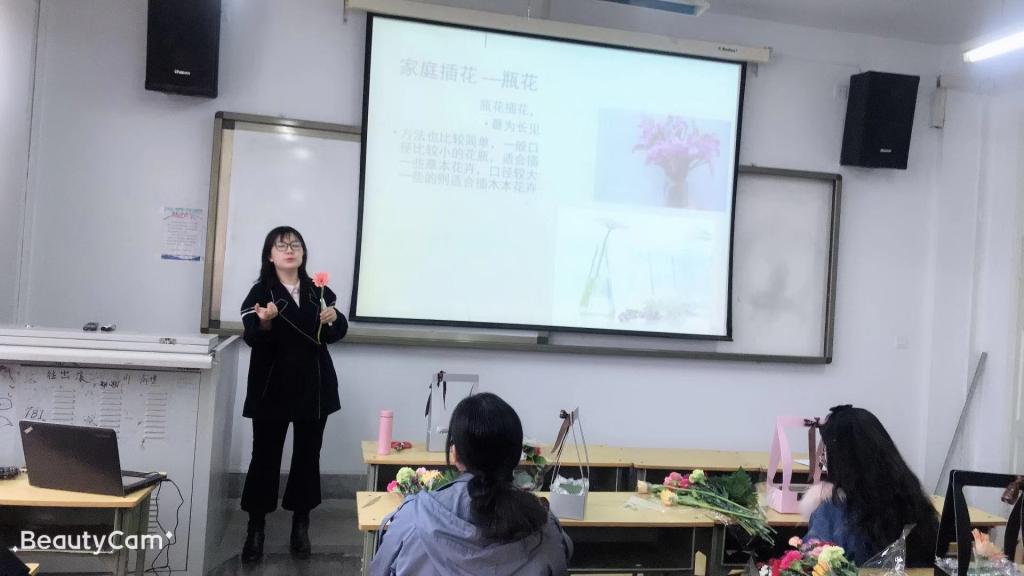 3月7日下午,国产精品久久久久无码AV开展了“追求品质生活幸福与花相约”为主题的迎“三八”插花艺术培训讲座。活动邀请了天水佳沁花艺插花培训师陈老师现场授课,共有26名女教工参加了本次活动。