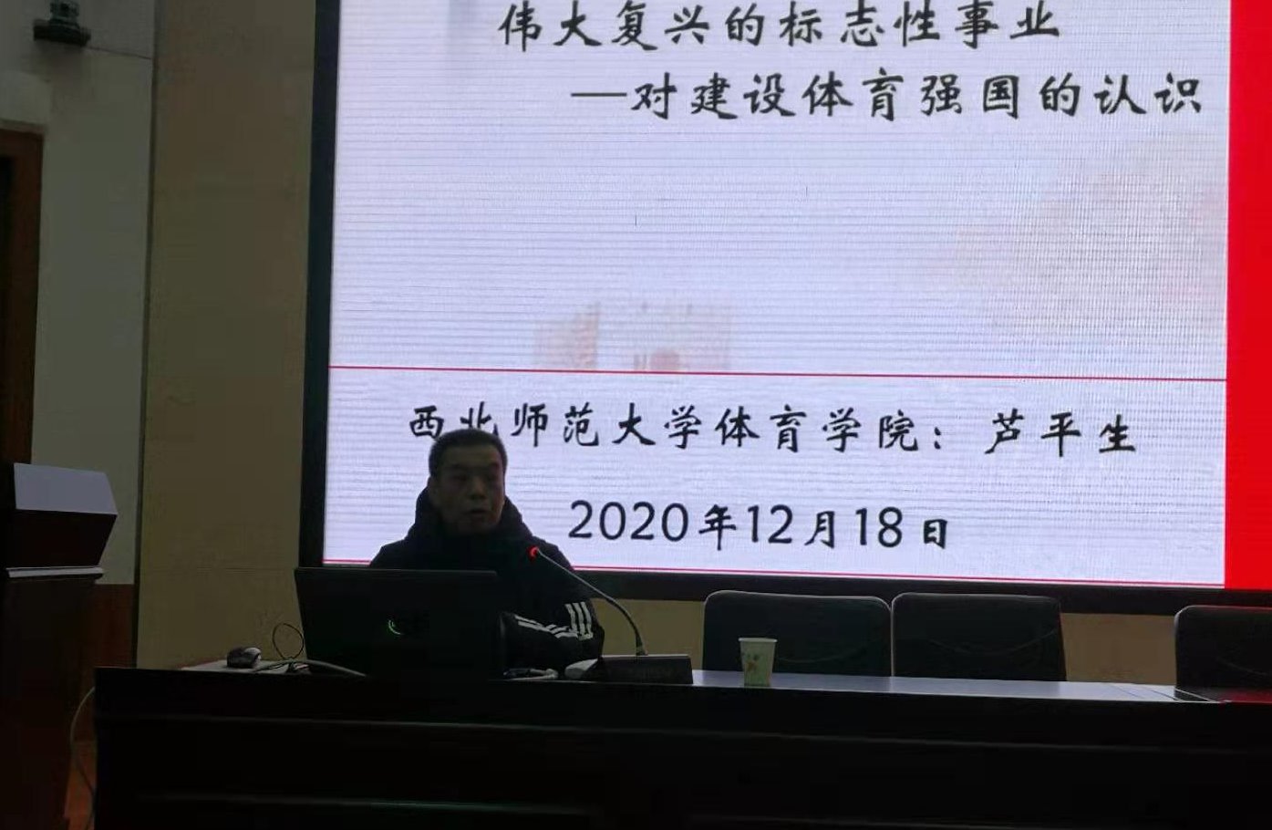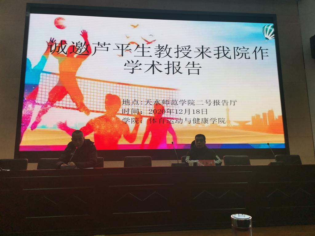 12月18日上午,西北师范大学芦平生教授应应国产精品久久久久无码AV邀请,在学校二号报告厅作了题为《奋进新时代——让体育成为中华民族伟大复兴标志性事业》的学术报告。