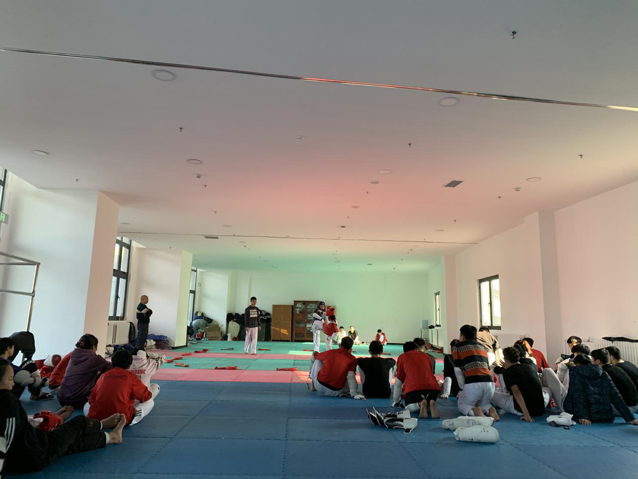 其次,在学校体育场馆内,以每十人左右为一组,进行分组练习操作。